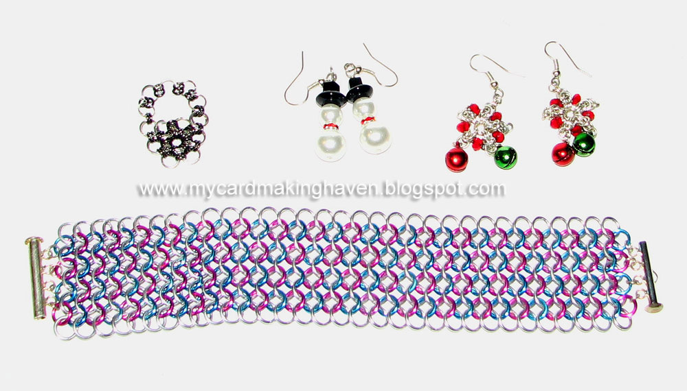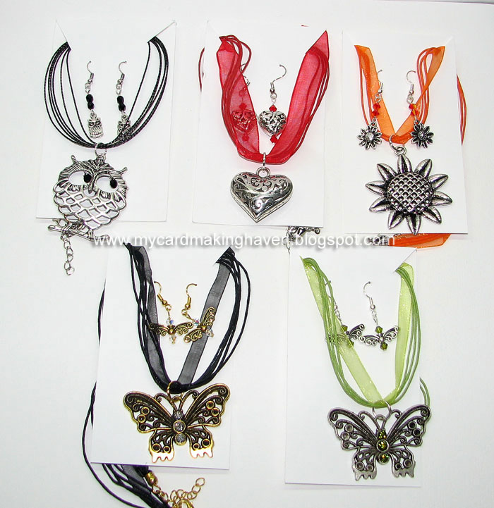 My last bit of news for now is that my friend and I have decided to sell our jewellery at a market,a new venture for us,maybe a little scary,but we are looking forward to it.So since I have been better,I have been trying to build my strength back up at the gym and trying to get a load of jewellery made for the market we will be attending at the end of this month.It is the annual Doll,Bear and craft show that is held at the Museum of Fire in Penrith and the dates 27th and 28th October 2012........so if you are going to be there come on over and say hello.Well must get some work done,I will leave you with photos of some of our jewellery.Hope to catch up with you all soon.